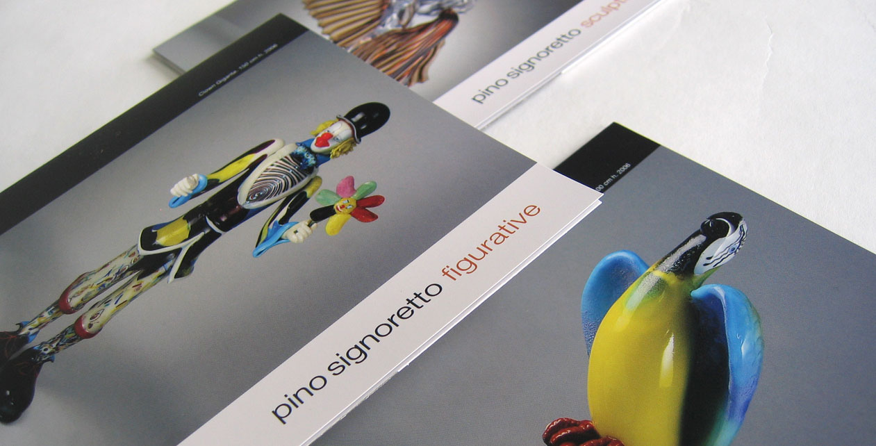 Series of brochures for Pino Signoretto, a world-renowned, master glass artist whose work has been shown all over the world. Venice Italy